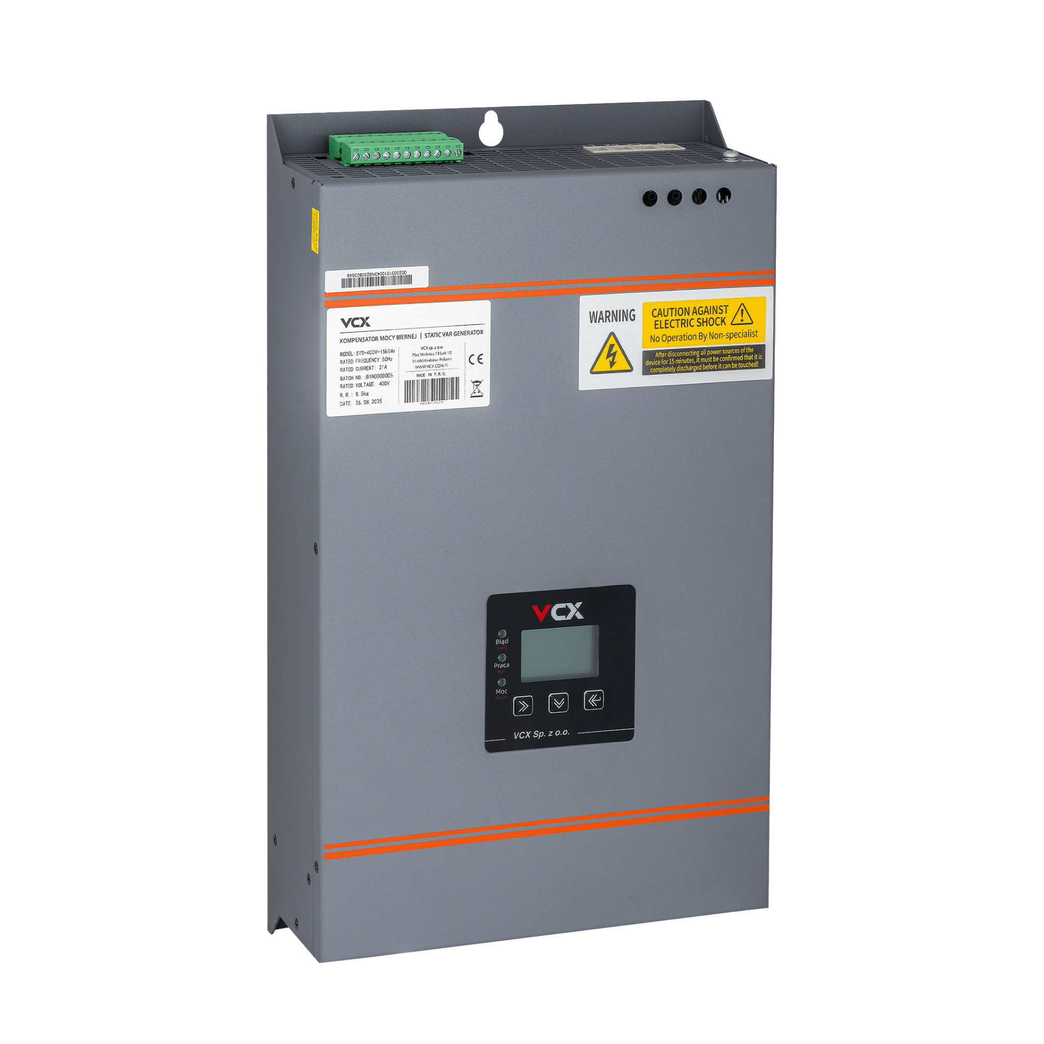 Kompensator aktywny mocy biernej SVG to nowoczesne urządzenie przeznaczone do kompensacji mocy biernej, filtracji harmonicznych oraz korekcji nierównowagi trójfazowej na końcach linii zasilającej. Model SVG jest montowany na ścianie, cechuje się niewielkimi wymiarami, niską wagą oraz pełną funkcjonalnością, co sprawia, że jest idealnym rozwiązaniem zarówno dla małych, jak i średnich instalacji.