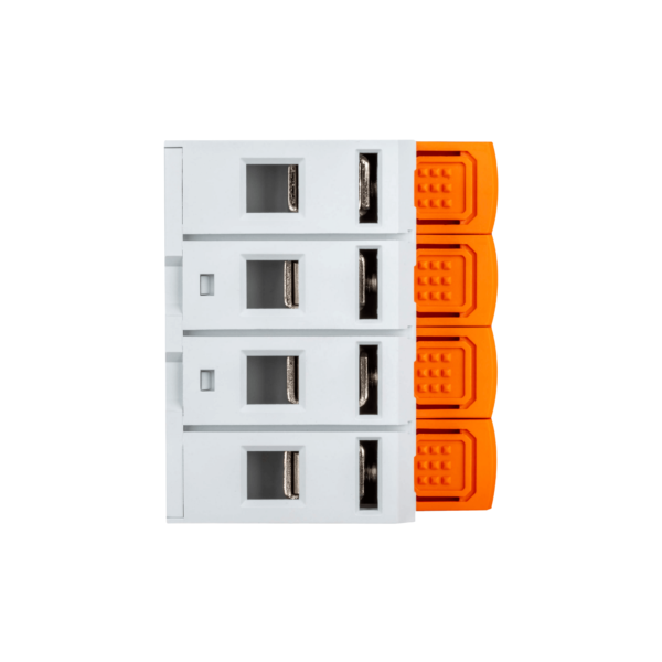 Ogranicznik przepięć T1T2 (B+C) 4P 8kA AC – widok boczny ze schematem połączeń elektrycznych